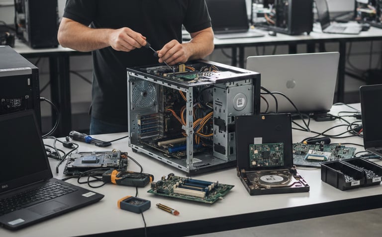 Configuração e manutenção de computadores para garantir o funcionamento perfeito do seu sistema.